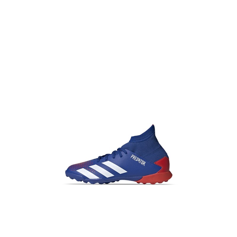 A tu niño le encantarán estos Tenis de futbol adidas Predator 20.3 TF creados para los jugadores de futbol que crean ocasiones de gol, buscan la portería y marcan muchos goles.Diseño adidas Tormentor Pack:Los colores que presentan estos tachones son los mismo que usarán la selección japonesa en los Juegos Olímpicos de Tokio 2020 donde serán anfitriones. Llevan el color "Japan Blue" como principal con detalles en rojo y blanco. Fueron inspirados en los Predator Mania que usaron algunos jugadores de la selección nipona en el mundial del 2002 de Corea y Japón. Tecnologías adidas Predator 20.3 FG:Este par está construido en material sintético con una cobertura texturizada llamada por adidas como "Demonscale" que da un mejor agarre en contacto con el balón. Cuenta con malla que va desde la zona de los cordones hasta la altura de los tobillos dando sensaciones envolventes al pie. Su suela TF de multitacos son perfectos para canchas de pasto sintético donde tienen un excelente agarre y tracción sobre el terreno de juego. Estos tachones adidas Predator se volverán los favoritos de tu niño. Los consigues aquí en Innovasport.com