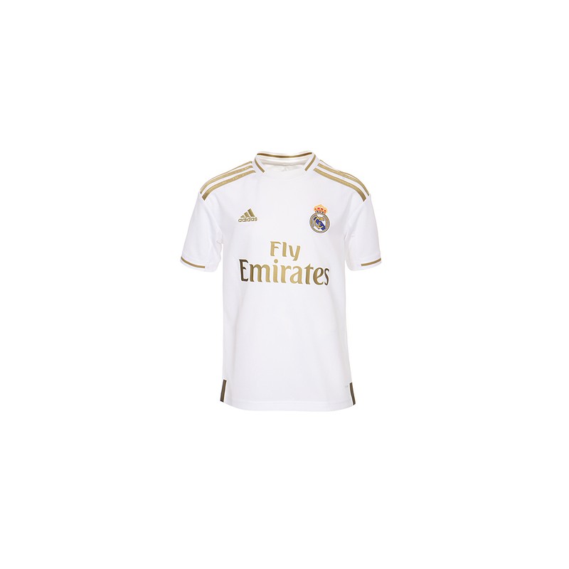 Los más jóvenes expresan su pasión, la nueva indumentaria del equipo madrileño es para ellos. El Jersey Real Madrid Local 19/20 de adidas mantiene un diseño elegante que lo muestra con sus detalles dorados. Su corte clásico con inserciones de malla en el interior de las mangas crea ventilación, mientras el tejido climalite elimina el sudor. El escudo bordado al frente da identdiad y es ideal para demostrar tu orgullo.