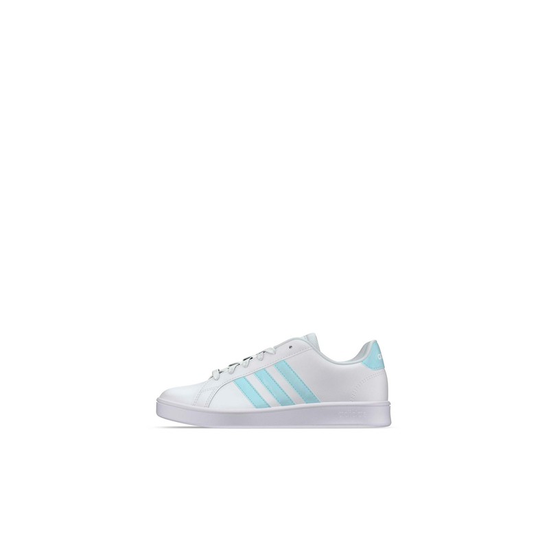 Tenis casual para niñosLos Tenis adidas Grand Court para niños capturan su esencia de los 70s y se actualizan para la moda de hoy. Un par casual para lucir con cualquier look y tener la esencia clásica de adidas con las franjas celestes a los lados para un contraste original.Construcción del tenis blancoEstos tenis para niños se han fabricado con material sintético para una gran durabilidad, además de tener cordones para un ajuste a la medida. Además incluye una plantilla ligera de EVA para que tu hijo tendrá pasos cómodos y su suela de goma crea tracción.Arma el outfit completo de adidas con ropa casual.