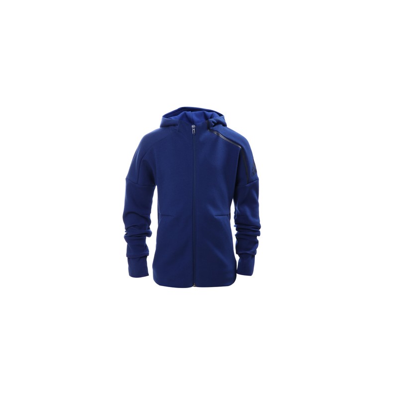 Estilo DJ1387Bolsillos frontales con cierre.Cierre frontal completo con gorro forrado.Hombros con las costuras caídas.Mangas preformadas.Línea en el hombro y logo adidas estampado en alta densidad en la manga.El corte ajustado es ceñido en el torso y las mangas. 69% algodón / 26% poliéster / 5% elastano.