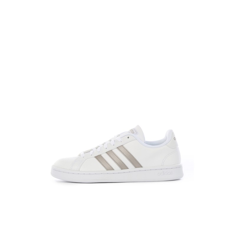 Tenis blancos para un look casualEl estilo minimalista y clásico se conjuga en los Tenis adidas Grand Court para mujer. Este calzado casual ofrece un look cotidiano y combinar con tu atuendo favorito del día.Construcción del tenis para mujerEstos zapatos se han diseñado con un material sintético para mayor durabilidad y comodidad en tus pies. Un par blanco que va con todo y combina lo clásico, además de ser cómodos a tus pies con su plantilla Cloudfoam Comfort para una mayor comodidad y su amortiguación de la entresuela proporciona un andar ligero. La suela de goma da una tracción segura sobre las superficies.Hay más calzado adidas para ti, ¡clic aquí!