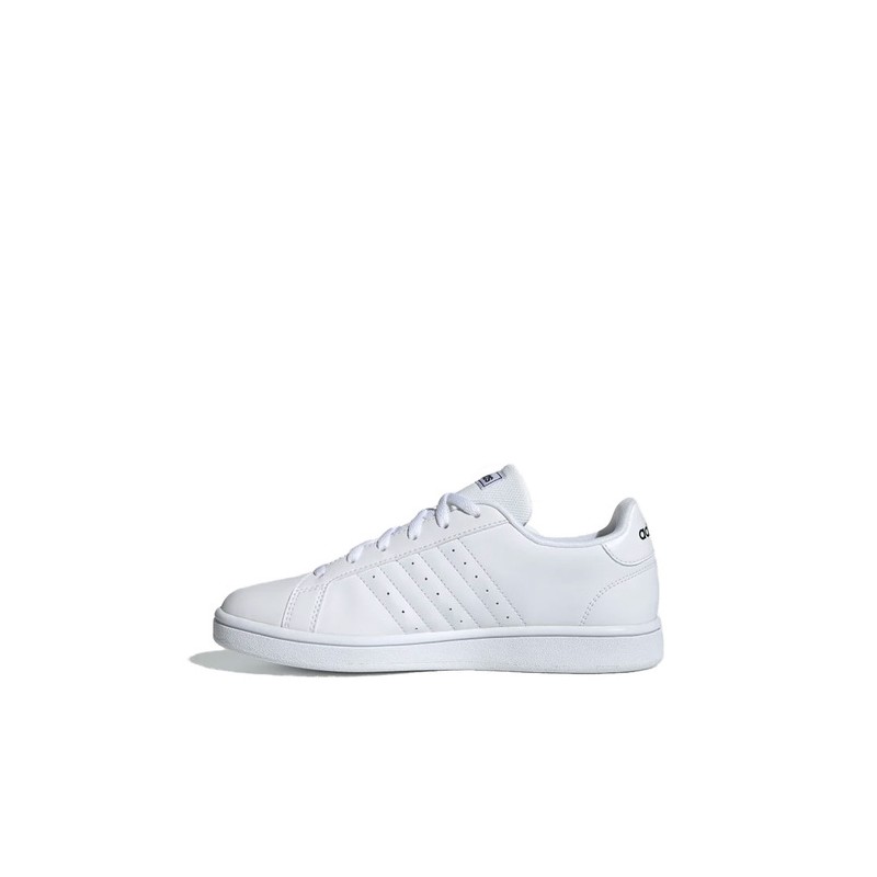 Retro y moderno para las tendencias de hoyLuce un estilo retro en tus pies con los TENIS ADIDAS GRAND COURT BASE que son un clásico de los 70s. Se inspiran en los estilos deportivos icónicos del pasado y los mueven hacia el futuro. Tienen un look perfecto para las actividades diarias.Construcción del calzado para mujeresEstos tenis blancos se han construido con material sintético y franjas a los lados para un aspecto clásico, además de una suela de goma que crea mayor confort en tus pasos y en tus recorridos. Completa el look completo con ropa casual, aquí.