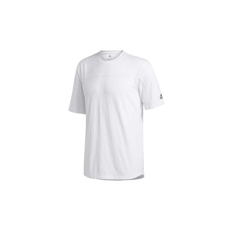 Estilo FM1876Color BlancoRecomendado para EntrenamientoCorte clásico.Cuello redondo.Dobladillo trasero más largo.Mangas cortas.Composición de algodón y poliéster.Diseño estampado.Tecnología Aeroready que absorbe la humedad para mantener la frescura.
