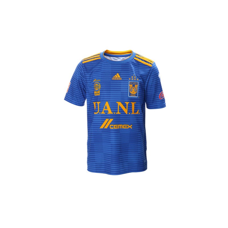 Estilo CD6011Jersey para niños de visitante de Tigres para la temporada 2018/2019.La tecnología Climalite elimina el sudor y ayuda a mantenerte fresco y seco.Cuello redondo.Escudo de Tigres de la UANL bordado en el pecho.Tejido entrelazado 100% poliéster.