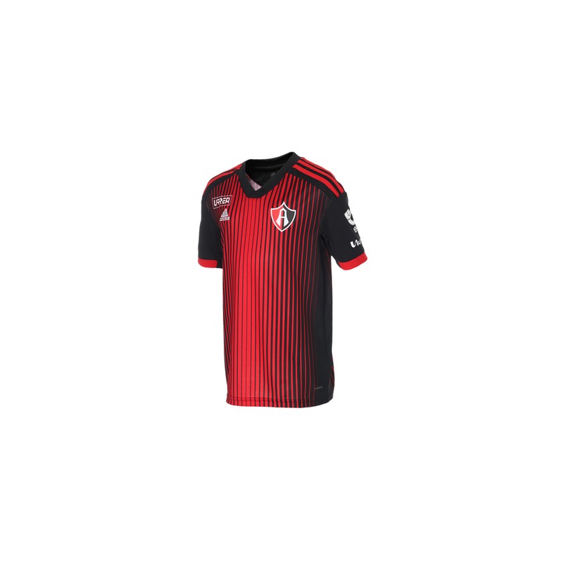 Hereda tu pasión por el Atlas a tu hijo con la nueva armadura de los rojinegros con el Jersey Atlas Local 19/20 que adidas ha creado con un diseño innovador, sin faltar el escudo del club al frente. Grita cada gol y siente cada emoción que tu equipo favorito otorga a su afición, tendrás comodidad por su Tecnología climalite que absorbe el sudor de la piel para evitar incomodidades. Además de tener franjas en los hombros y un escudo del club al frente.